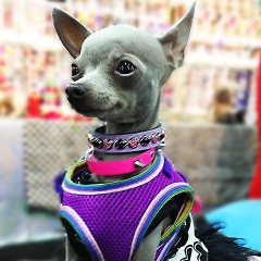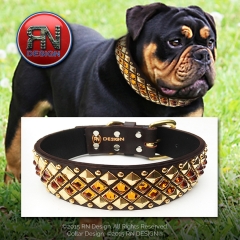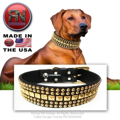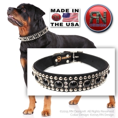 WINSTON Bar Bar Style with Gold Pyramid Studs and Double Row Gold Ball Studs on Black Leather. Available in sizes 20 through 26.