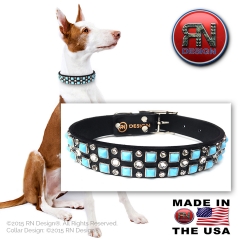LAUREL Style with Turquoise European Glass Cabs & Crystal Accents with Silver Hardware on Black Leather. Available in sizes 12 through 26. Extra Large Sizes upon Request.