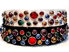 Pebbled White Leather w/ Multi-Gem Tones. Black Leather w/ Multi-Gem Tone Swarovski Crystals.