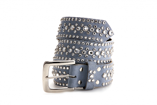BLUE SUEDE LEATHER :: WHITE CRYSTALS :: SILVER HARDWARE :: BASIC D BUCKLE