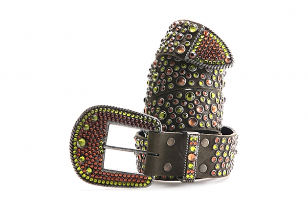 ARMY GREEN LEATHER :: TOPAZ & OLIVINE CABACHONS :: CAB ENCRUSTED BUCKLE :: PEWTER HARDWARE