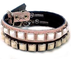 Light Pink Leather with Chalk White European Glass Pyramid Cabochons. Black Leather w/ Ivory Cabs.