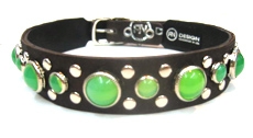 Black Leather w/ European Glass Green Opal Cabochons. Black Leather w/ Pink Opal Cabs and Stud accents.