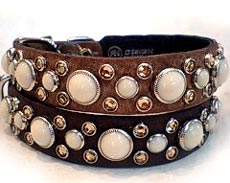 Chestnut Leather w/ Ivory European Glass Cabochons and Light Colorado Swarovski crystals. Black Leather w/ Ivory European Glass Cabochons and Light Colorado Swarovski crystals.