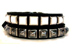 Black Leather w/ Chalk White European Glass Pyramid Cabochons. Black Leather with Hematite Pyramid Cabs.