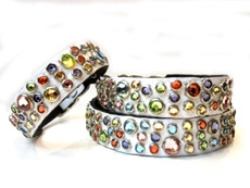TOKYO: Pebbled White Leather with Multi-Swarovski Pastel Stones.