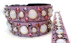 Lilac Leather w/ White Opal Cabs and Rose & Tanzanite Swarovski accents.